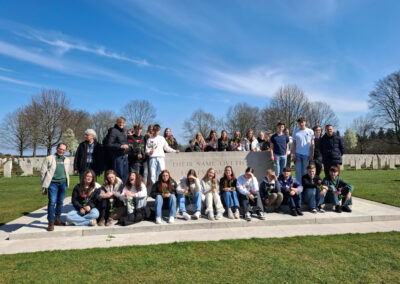 Abschluss des Programms, das finanziell mit Mitteln des InterReg-Programms von der Euregio Rhein-Waal gefördert wurde, bildete der Besuch des kanadischen Friedhofs von Groesbeek. Nach einer kurzen Einführung, in der es maßgeblich um die Geschehnisse rund um die Offensive „Market Garden“ im September 1944 ging, legten die Jugendlichen Rosen auf die Gräber der damals in dieser Gegend gefallenen Soldaten. Was allen SchülerInnen auffiel und nachdenklich machte war, wie viele der getöteten Soldaten oft kaum älter waren als sie selbst, als sie durch den 2. Weltkrieg umkamen.