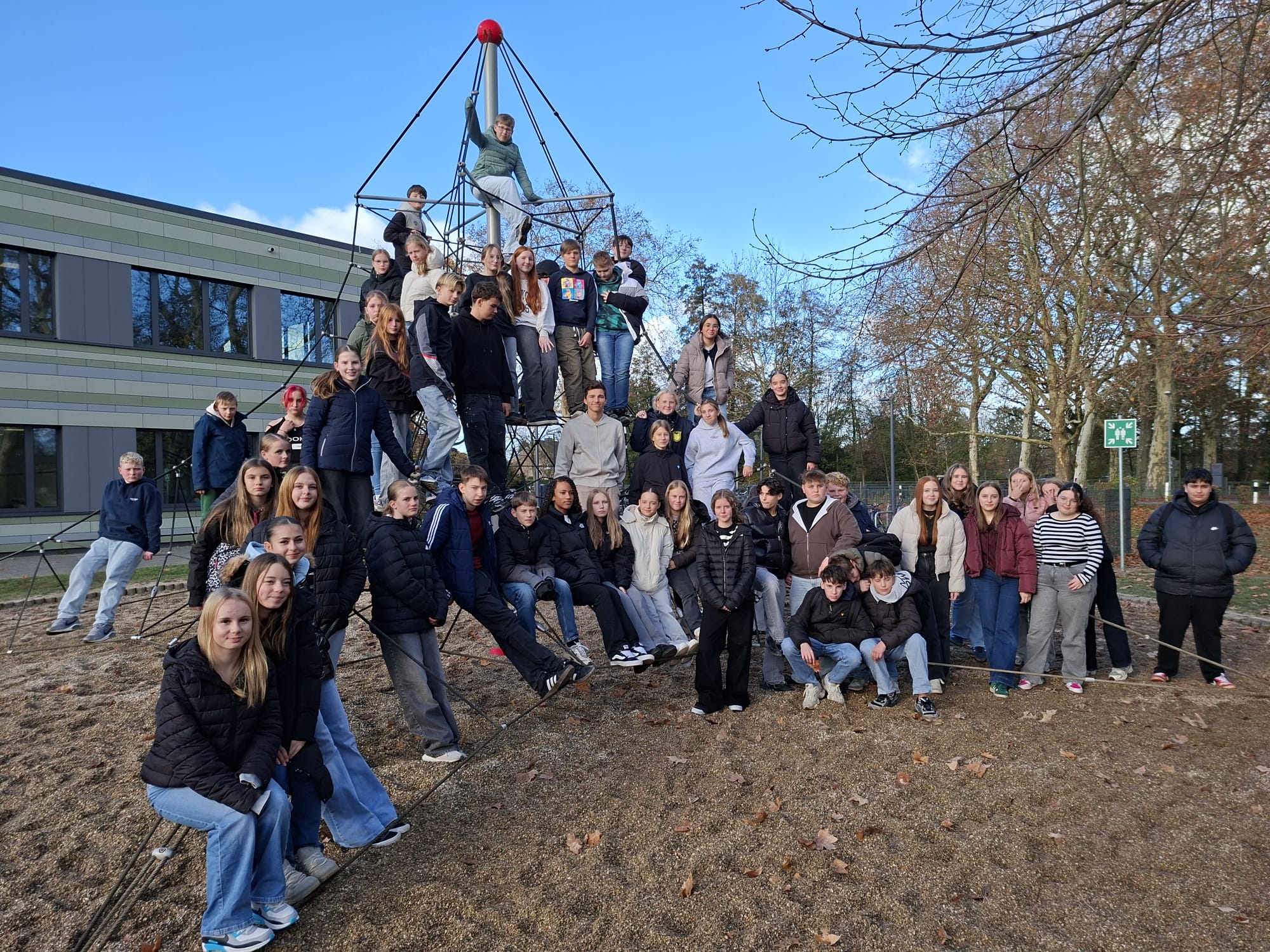 Am 24.12.25 besuchten die Schülerinnen und Schüler der Niederländischkurse des Jahrgang 8 mit ihren Lehrkräften Frau te Voort und Herrn van Rongen das Almende College in Silvolde. Dort wollten unsere Schülerinnen und Schüler ihre niederländischen Austauschpartner wiedersehen, die sie erst eine Woche vorher an unserer Schule kennengelernt hatten.