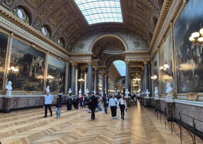 Am dritten Tag besuchten wir das Schloss Versailles. Noch müde vom Feueralarm im Hostel, der uns mitten in der Nacht aus dem Schlaf gerissen und auf die Straße getrieben hat, freuten wir uns auf die Schlossbesichtigung. Das Schloss selbst war das frühe Aufstehen wert. Sowohl beim Betreten der Anlage beeindruckten uns die prachtvolle Architektur und die riesigen Gartenanlagen.